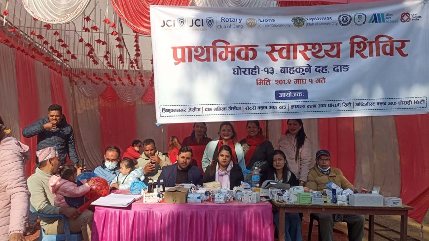 स्वास्थ्य शिविर सञ्चालनमा रोटरी क्लब अफ दाङ, लायन्स क्लब अफ घोराही सिटी तथा अप्टिमिस्ट क्लब अफ घोराही सिटीको संयुक्त सहकार्य रहेको आयोजकले जनाएको छ।